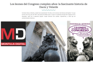 SILVIA ANULA. El periodista Juan Pablo Bellido, licenciado en Periodismo por la Universidad de Sevilla con el Premio Extraordinario Fin de Carrera y máster en Comunicación Institucional y Política, ha publicado sendos reportajes en “El Periódico de España” y “Montilla Digital” este 26 de mayo de 2024, fecha en la que se conmemora un doble aniversario: el 152º de los “Leones del Congreso” y el 12º del libro del escritor, profesor y periodista, Federico Utrera (Majadahonda) que los recuerda. “Los leones del Congreso cumplen años: la fascinante historia de Daoiz y Velarde”, se titula el reportaje, que comienza así: “Se llaman Daoiz y Velarde y, desde hace exactamente 152 años, son los leones más famosos de España. Y es que tal día como hoy, pero de 1872, esta pareja de félidos pasó a ocupar la escalinata principal del Congreso de los Diputados, sede de la soberanía popular. Desde entonces han asistido, impertérritos, a todo tipo de acontecimientos históricos. Incluso, en 2012, el conjunto escultórico que representa a la ninfa Atalanta y a su pretendiente Hipómenes, dos personajes de la mitología griega que fueron convertidos en leones y condenados a no poder volver a mirarse, llegó a protagonizar un libro, “Los leones del Congreso”, en el que el periodista almeriense Federico Utrera desvela algunos de los secretos mejor guardados del edificio más noble de la Carrera de San Jerónimo”.